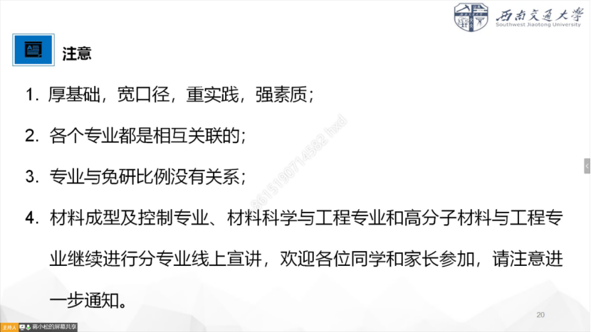 2020年3月27日晚上七点,bevictor伟德官网2019级本科生分专业宣讲首次采取了线上会议的形式开展。各地的材料学子准时进入腾讯会议宣讲直播间,对专业加深了解,并为选择方向做好准备。