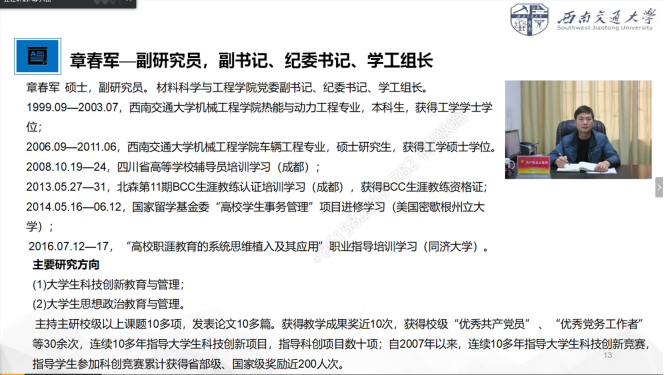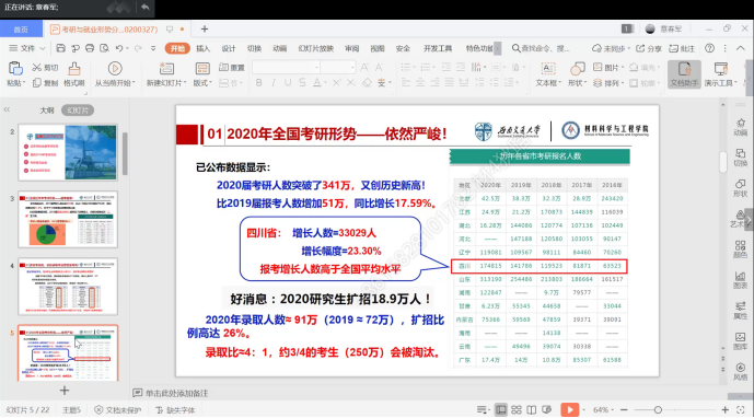 在三位教授结束他们的专业介绍后,公司章春军副书记就员工升学与就业形势给大家做了分析。章春军副书记灵活对比,向同学们揭示了严酷的考研斗争以及就业形势。相信同学们能够警醒自己,在疫情期间同样不落下功课,向着优秀的自己不断努力!