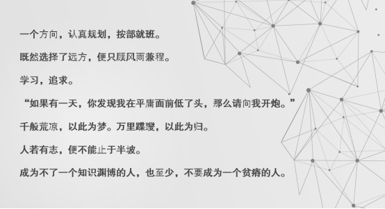 “视频最后那几句:‘今天的分享到这里就结束了’、‘那么这节课就到这里’真的让人很感动,没有想到这门课程这么快就结束了。”