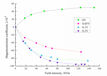 随着钒含量从0增加0.2wt.%(图2),磁致伸缩行为由正变负。V含量越高,负磁致伸缩系数的绝对值也越大。