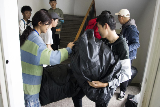 早上8点,搬寝工作正式开始。搬寝现场,虽然忙碌却井然有序,随处可见两三位同学共同提着大件包裹,后勤服务小组积极负责后勤保障和现场总调度,党员服务队认真仔细看管物品,帮扶小组按时到达女生寝室帮助女生搬寝,同学之间齐心协力、互帮互助,让彼此之间友谊得到升华,也让换寝过程充满温情。