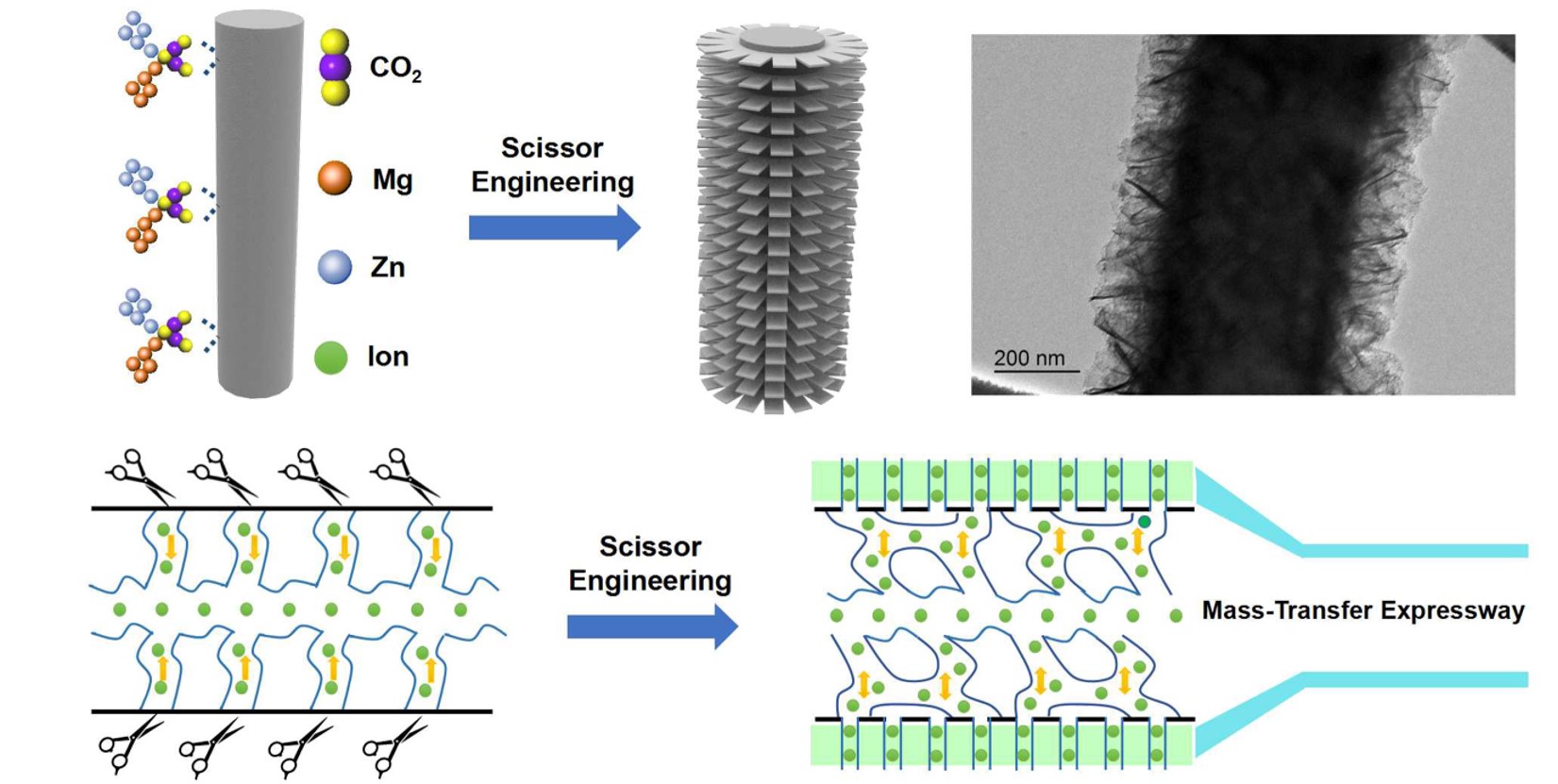 在纳米能源与功能器件团队杨维清教授、张海涛副教授及加州大学洛杉矶分校陈俊教授的共同指导下(通讯作者),bevictor伟德官网2018级硕士生王庆通过分子剪刀剪切策略实现不同维度碳纳米材料的可控化构建,并对它的裁剪机理进行了详细的阐述。不同于目前广泛研究的表面修饰技术,他们采用分子剪刀打开碳材料的表面,实现分子尺度上的裁剪。在一定的温度条件下,锌蒸气和镁蒸气会进入碳材料的内部,一旦遇到二氧化碳就会形成一把分子剪刀,进而实现碳纳米材料的可控裁剪。测试表明,分子剪刀作用下的碳纳米材料不仅拥有高的比表面积,而且拥有适宜的孔径分布。在PVA/Na2SO4凝胶电解质体系中,器件展现出4.63 mWh cm–3的能量密度(对应功率密度为3520 mW cm–3)。研究者相信,此项研究提出的分子剪刀剪切策略一方面将会为碳纳米材料的革新提供借鉴意义,另一方面将会促进能量存储、传感和环境修复等领域的发展。该研究成果以“Tailoring Carbon Nanomaterials via a Molecular Scissor” 为题发表在Nano Today上。(DOI: 10.1016/j.nantod. 2020. 101033)
