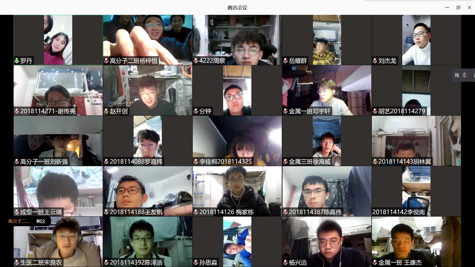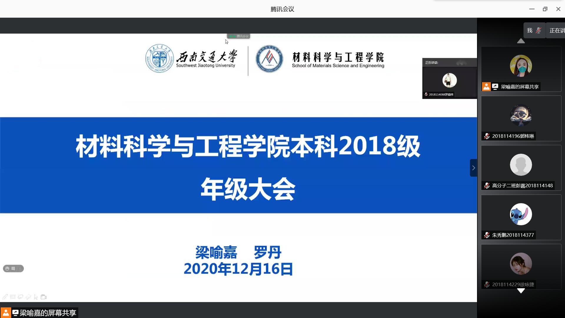 最后,梁喻嘉、罗丹辅导员和全体本科2018级同学线上合影留念。至此,大会圆满结束。