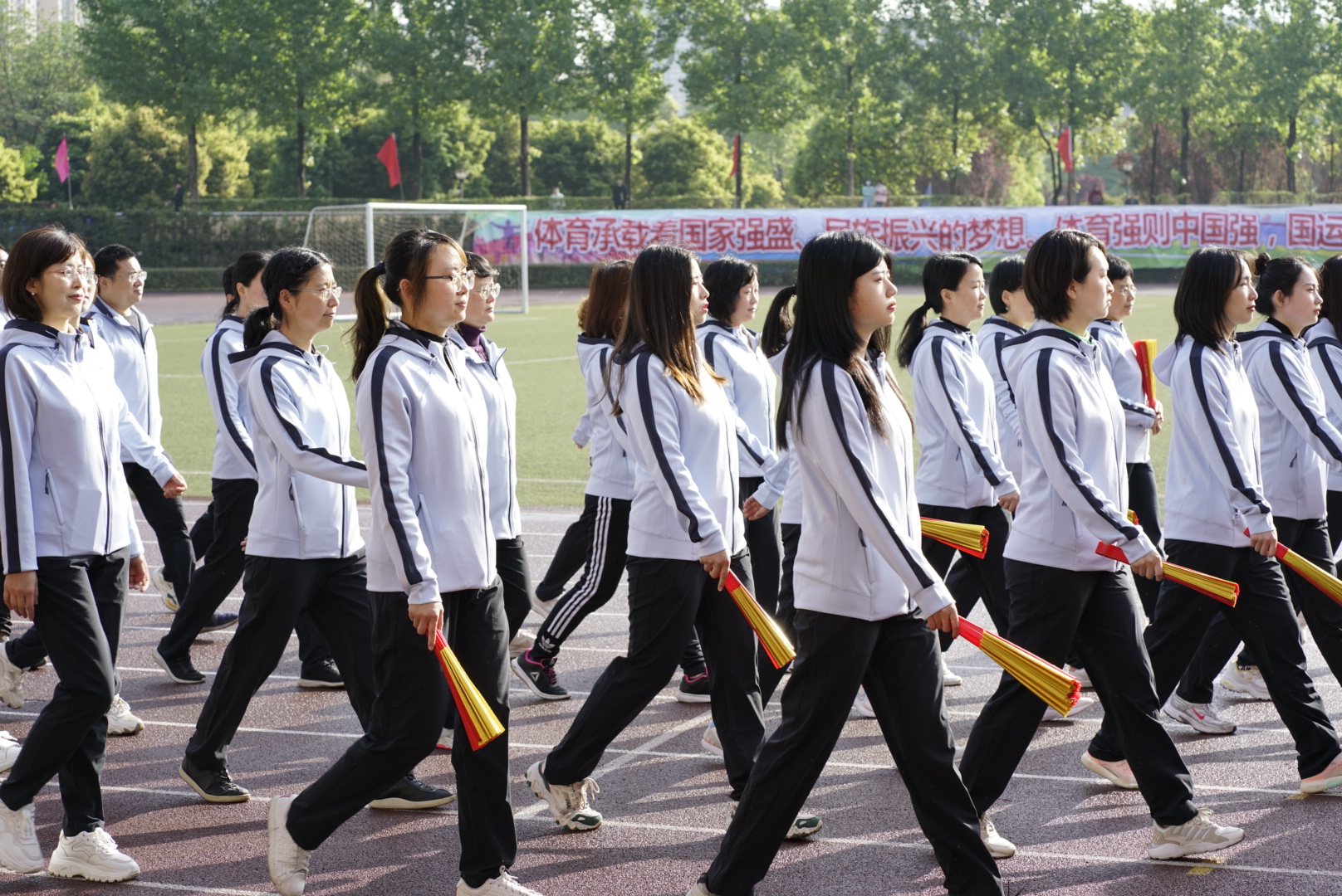 踏着晨风,迎着朝阳,bevictor伟德官网的师生方队向主席台迈进。他们昂首挺胸,脚下有路,心中有火,眼里有光!