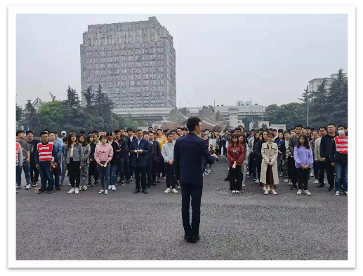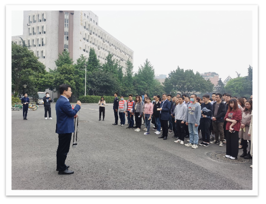 待全体师生紧急疏散到指定疏散地点(零号教学楼面向南门的空地),工作人员迅速检查楼中各区域确认是否有人滞留或其他意外情况,然后迅速返回集合地点、清点人数,并向总指挥上报疏散情况。随后,韩教官对本次消防疏散演练进行了点评:(1)大部分师生表现非常优秀,能够及时对火情做出反应,迅速有序地撤离火场;(2)少部分同学对此次活动不够重视,警报信号想起时仍在办公;(3)部分师生未能按照就近通道疏散原则撤离,还是习惯性地沿自己常走的路线撤离。