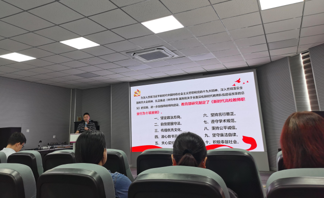 为深入学习贯彻习近平新时代中国特色社会主义思想和党的十九大精神,深入贯彻落实全国教育大会精神,扎实推进《中共中央国务院关于全面深化新时代教师队伍建设改革的意见》的实施,深入宣传贯彻《新时代高校教师职业行为十项准则》文件精神,进一步加强公司师德师风建设,2021年5月20日,委、纪委面向全院教职工专题组织“师德师风”典型案例警示教育活动,党委副书记、纪委书记章春军作专题宣讲,党委书记陈勇作重点强调。