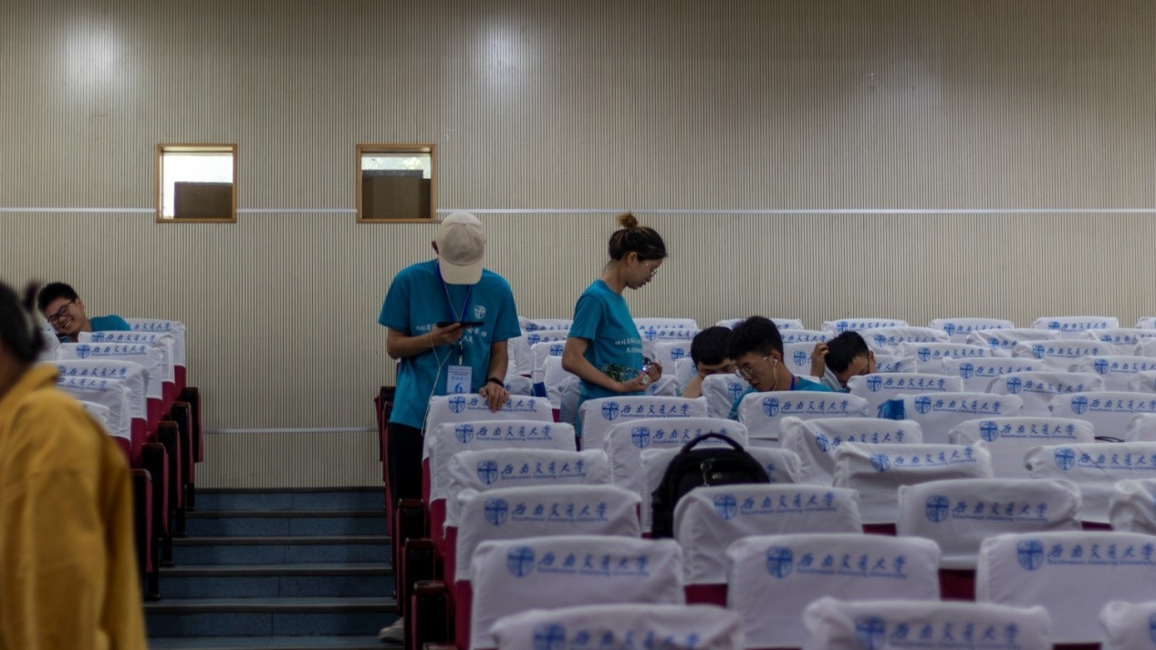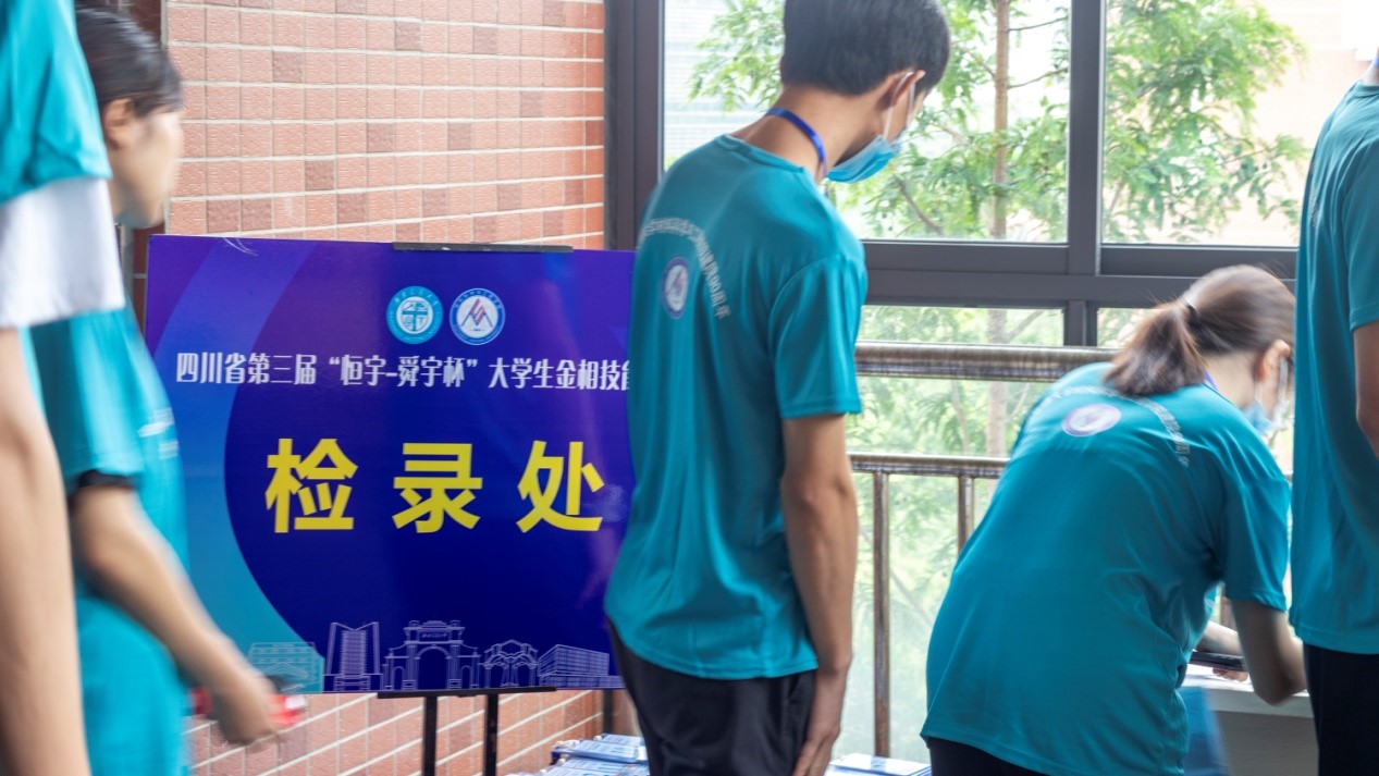 在图书馆一号报告厅,参赛同学正在等待检录。