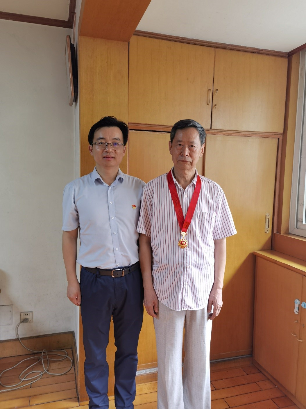 在老党员王凯同志、吴大兴同志家中,受公司党委委派,公司党委书记陈勇同志亲切询问了他们的身体状况,在给他们鞠躬致敬后,分别郑重为其佩戴“光荣在党50年”纪念章,感谢他们多年来为党的事业做出的积极贡献。