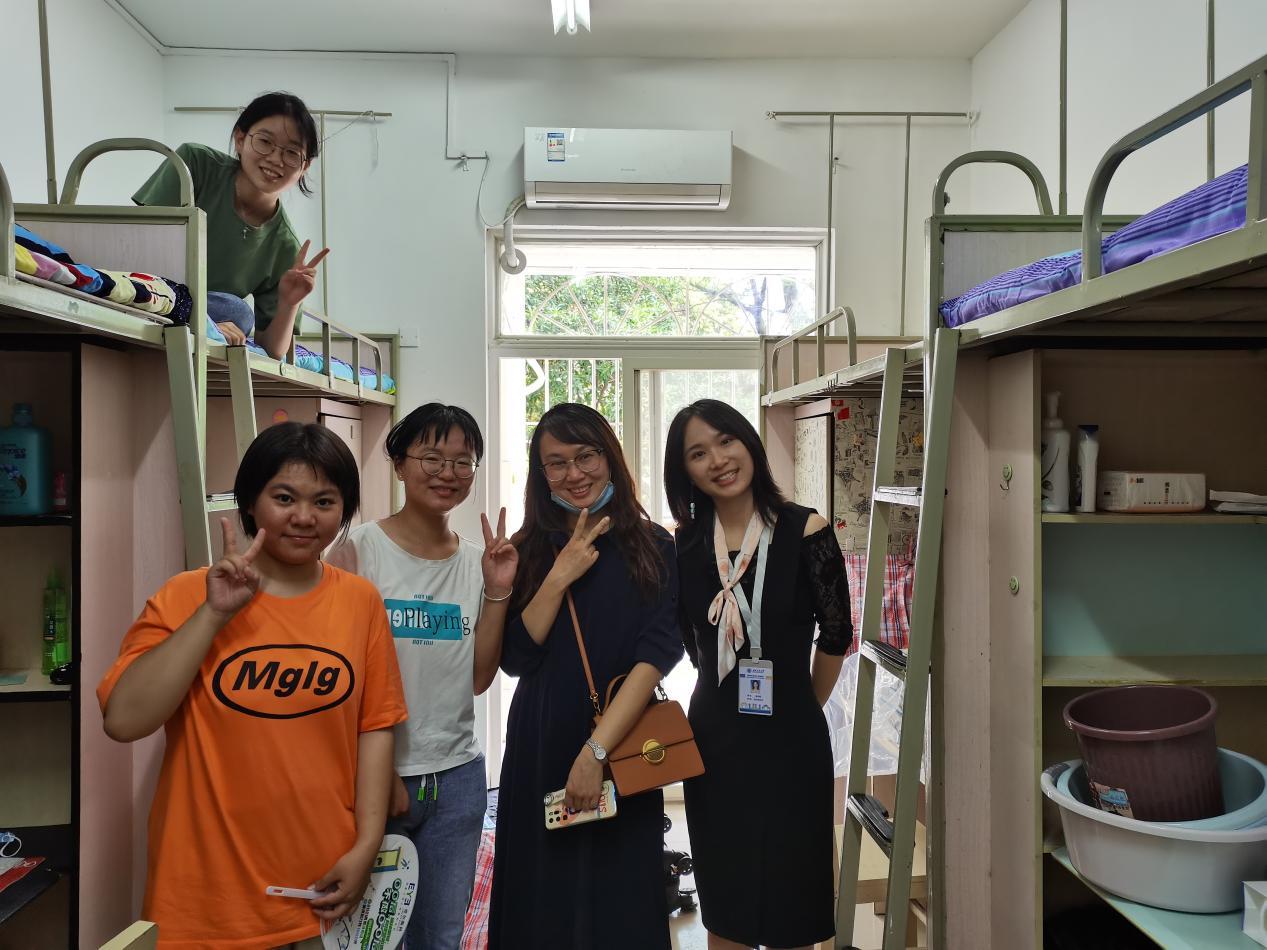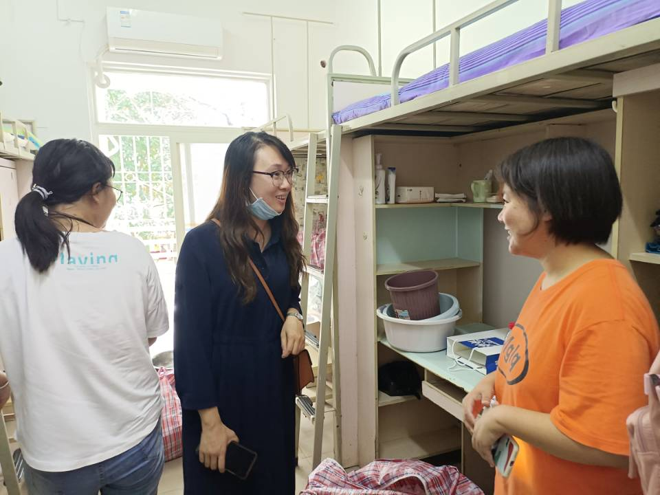 新生报到结束后,为进一步了解新生对老员工活的适应情况,关心关爱新同学,2021级本科生班主任热心走访新生宿舍,了解新生入住情况,为新生答疑解惑,与新生进行了面对面交流,向新同学们表达亲切问候和深切关怀。