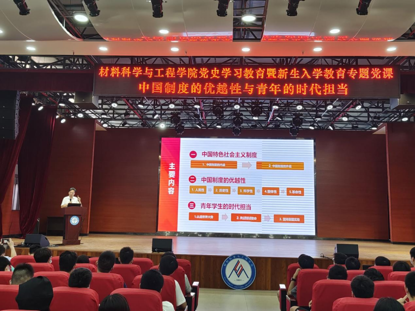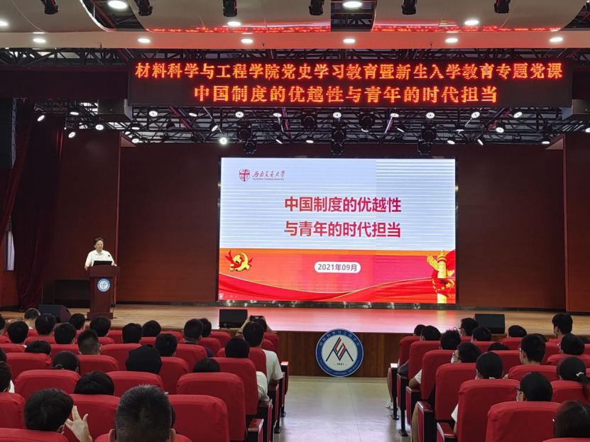 2021年9月28日16:00,公司党委副书记、纪委书记张学龙应委、纪委的邀请,在犀浦校区一食堂三楼为bevictor伟德官网新生讲授党史学习教育暨新生入学教育专题党课,主题为《中国制度的优越性与青年的时代担当》。公司党委书记陈勇、党委副书记章春军、集团纪委办胡博、公司党政办薛逸凡、公司辅导员黄德明、郑纪伟、许欢、董海霞以及2021级全体新生参加了党课学习。党课由公司党委副书记章春军主持。