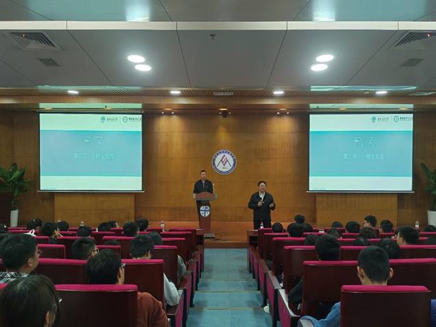 接着,公司朱旻昊经理为同学们作院情介绍,并为同学们带来老员工学习成长指导课。朱旻昊带领同学们一起回顾了交大在铁路领域取得的众多辉煌成就,介绍了院史院情各类重要情况与数据。随后,朱旻昊以“什么是大学”这一话题开启老员工活的讲述,希望同学们要立足大学这一平台,注重专业知识、通用知识、社交能力和管理技能的学习和提高。他以“五维度学习培养目标”为切入点,提醒同学们要加强人生规划的思考和实践,告诫同学们要学会时间管理。他引入儒家思想精髓,教育同学们要培养家国情怀,做到“修齐治平、修己安人”。最后,朱旻昊为新同学送上寄语,向同学们传授大学学习生活经验,对各位新同学提出了期望和要求,希望大家做最好的自己!