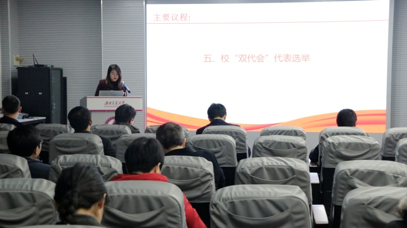 会议由院工会第五届委员会副主席涂秋芬同志主持。除了因出差等事由请假的公司“双代会”10名代表,公司“双代会”38名代表出席本届大会。相关领导和老师应邀列席。