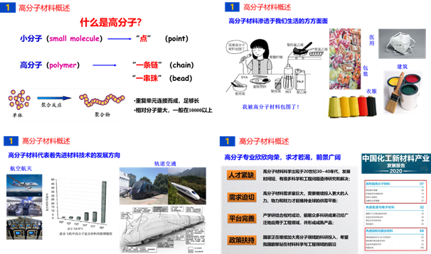 宣讲会分五项内容进行,包括高分子材料概述、高分子材料系介绍、高分子专业培养方案介绍、人才培养成效介绍以及师生互动交流。首先,祁晓东老师从高分子材料结构特点、应用场景、人才需求等方面进行了详细讲解,他提到高分子材料已渗透于生活的方方面面,并给现代社会带来便捷化、高效化和智能化,从高分子产业全球产量、发展趋势到高分子材料对高技术人才需求等现象表明高分子材料专业具有很好的发展前景,选择高分子材料专业必将大有可为。