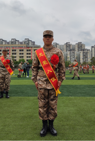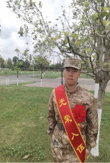 俞冠霖同学出生在一个光荣的军人家庭。他的祖父和外公都曾参加过抗美援朝战争,叔公曾参加过对越自卫反击战。他的父亲也有过十多年的从军经历。受家庭影响,俞冠霖的心中自小就播下了参军报国的种子。早在2021年春季学期,他就参加了公司的应征入伍报名,但却遗憾落选。意外落选对一心入伍的俞冠霖来说是个不小的打击,但这并没有让他放弃,半年后他选择再次应征报名,终于圆梦军旅。