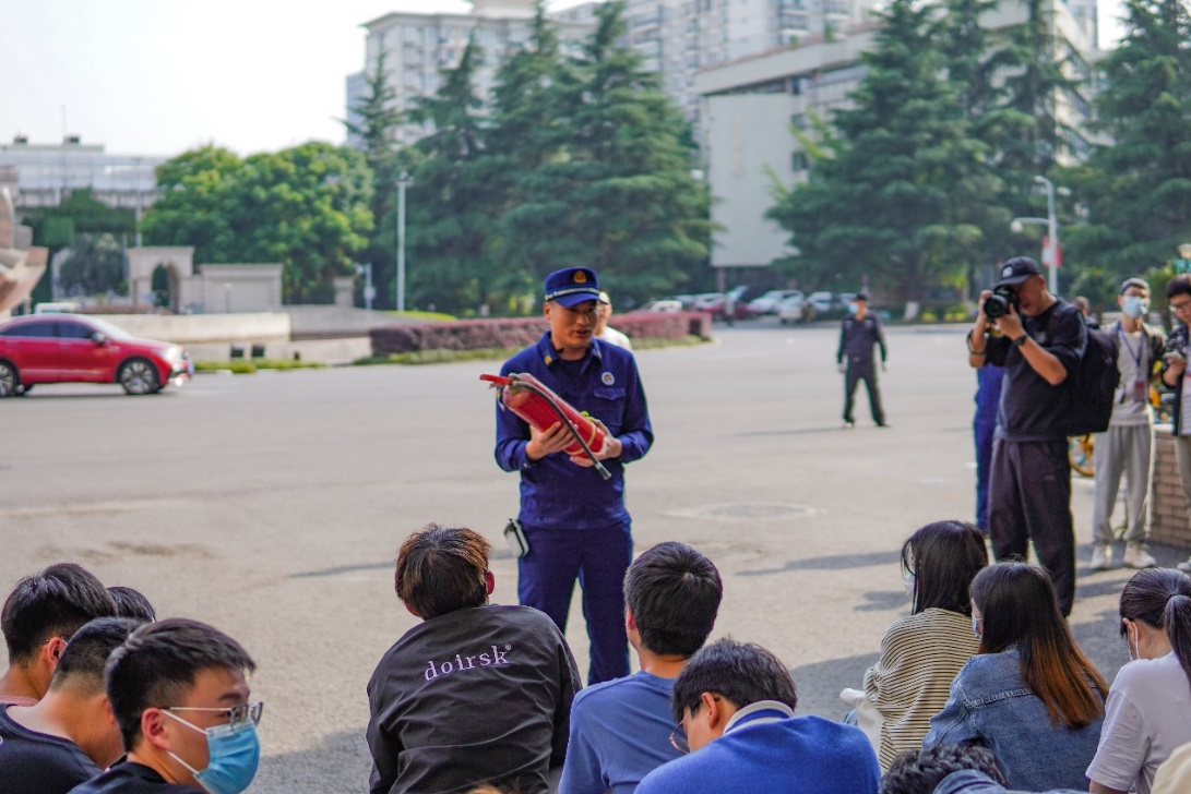 结束消防安全知识培训后,老师们指挥全体同学有序在0号楼前空地集合,陈勇向同学们提出相应要求。第一是火灾预防的重要性,周边的案例警示大家认识火灾对于生命安全以及财产安全的危害性之大,认清火灾预防等消防安全工作的重要性。第二是提高消防安全技能的重要性,重点强调了消防演练实操的重要性以及消防器材正确使用的必要性。