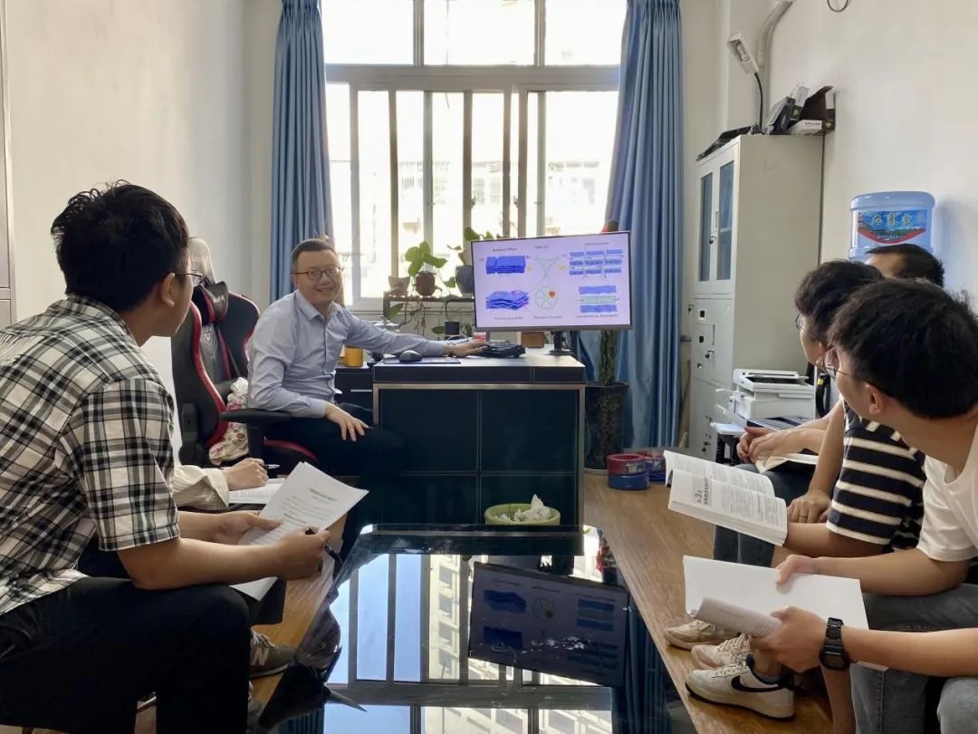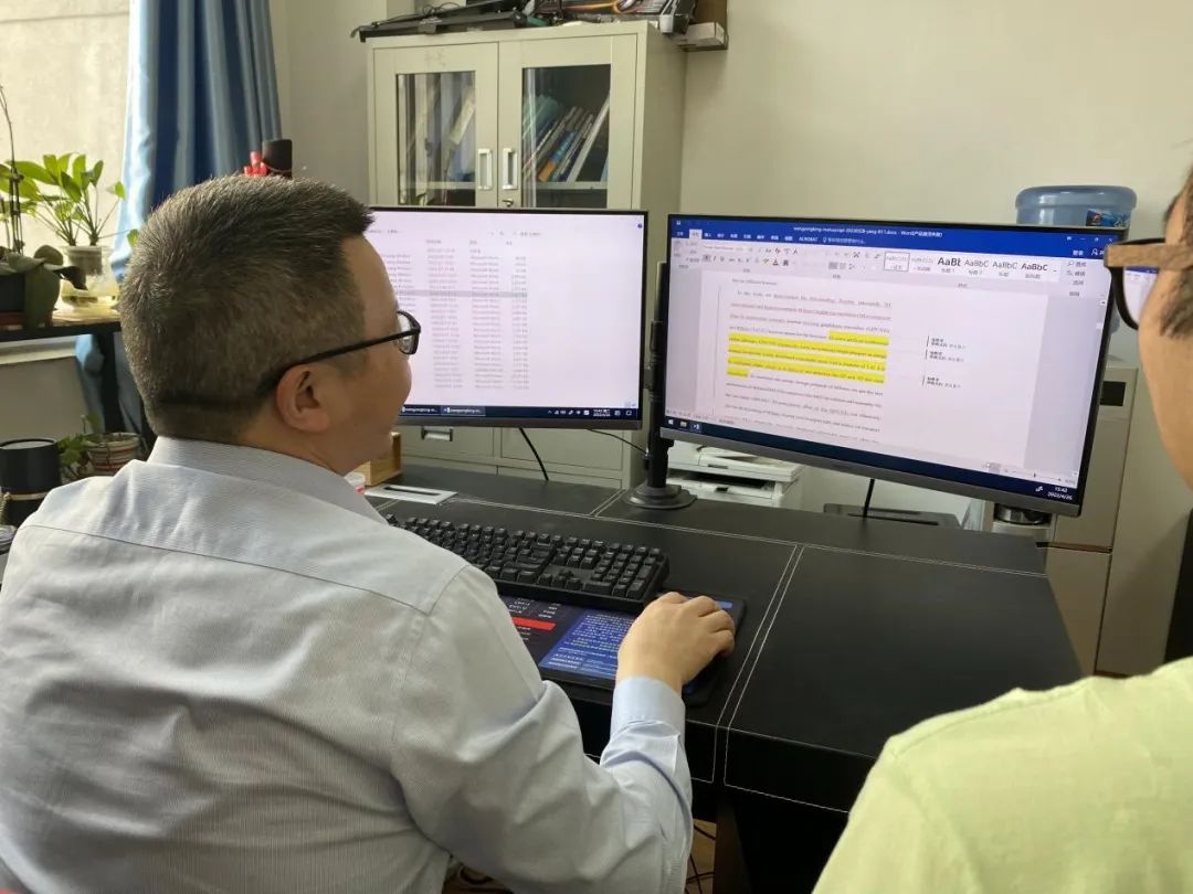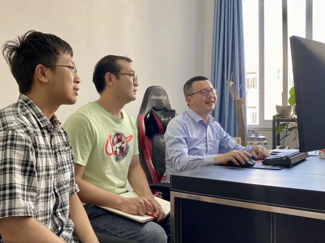 午饭过后,杨维清在办公室短暂休息,紧接着就继续扎进繁忙的科研工作中。14:00,有项目的合作方打来电话,商讨项目合作及规划下一步工作进度安排。商谈刚一结束,立马有员工敲门进来请求购置实验药品及书籍,接着又有同学带着开题报告来修改……敲门声不断响起,一个接一个的同学前来找杨老师进行相关事宜的汇报和商讨,办公室的门似乎就从未关上过,杨老师对同学们的耐心、对科研的认真也感染着每位同学。