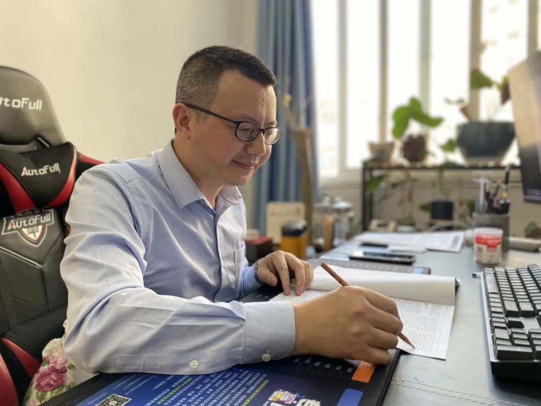 16:00,杨维清终于喝了杯水休息一下。刚放下水杯,就又有员工过来修改论文。大家一起坐在电脑前,一字一句,反复斟酌,对论文进行从头到尾的批注修改。看到员工似懂非懂,杨维清立马在纸上画下示意图,详细阐述涉及到的理论知识等,直至对方恍然大悟,他才舒心一笑,拍手道:“Perfect”!在修改论文的过程中,杨维清很尊重、珍惜员工的每一个想法,他总是循循善诱,让每个员工都能充分表达自己的观点,教学相长,乐此不疲。