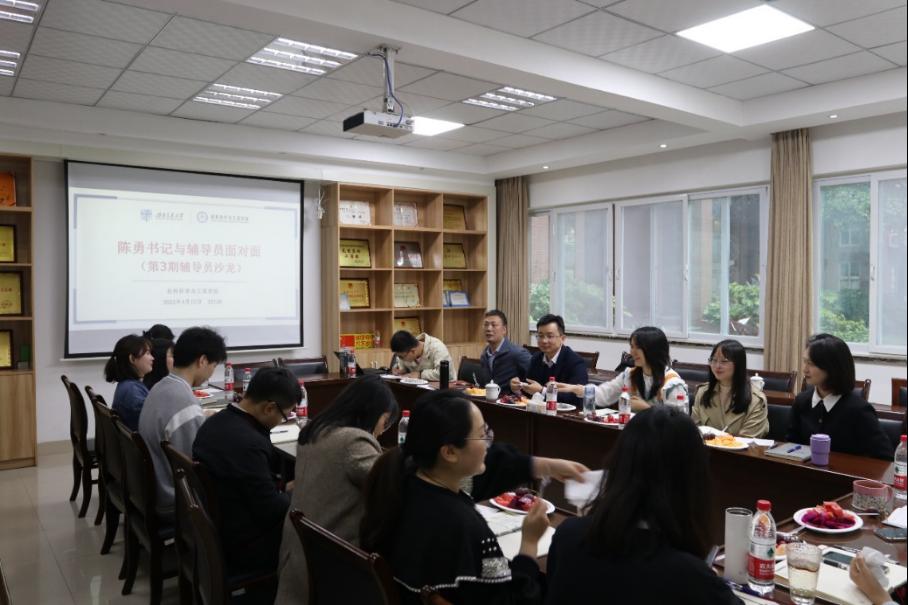 16:30,辅导员沙龙开始了,今天的地点在犀浦校区,氛围比较轻松。有时,经理朱旻昊和党委书记陈勇也会来参加沙龙活动,与全体辅导员“面对面”交流,一起聊工作、聊生活、谈困难、谈收获,听听大家的心里话,给大家鼓励指导帮助。这是为辅导员交流心得、分享经验、排解压力、提升能力所搭建的一个交流平台,是公司推进辅导员队伍专业化职业化专家化的重要举措。每周1次的辅导员工作例会,也是充电赋能的重要机会,除了汇报、研讨、谋划工作重点外,会上也经常开展工作实务培训,相互分享专项工作的经验。