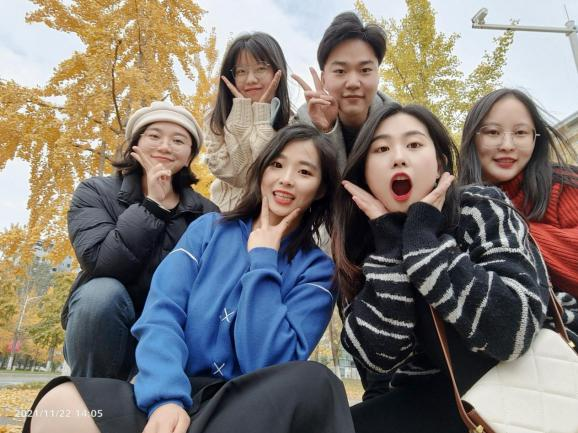 12:50,结束就餐的老师们,一起走在从食堂回到2号教学楼的路上,今天天气格外的好,办公室的女老师们走在银杏大道上,用镜头记录下这美好的时光。他们是工作时心往一处想、劲往一处使的“战友”,是生活中“我的果汁分你一半”的贴心朋友。