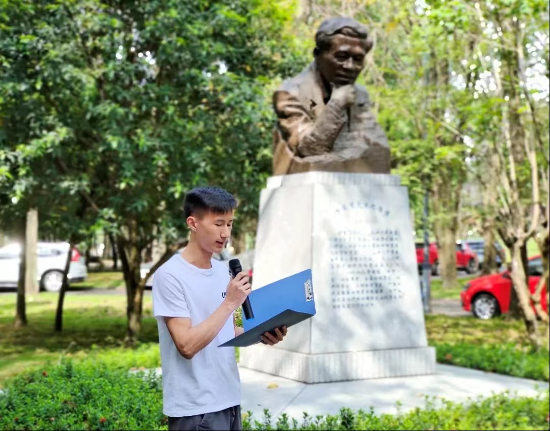 启动仪式结束后,举行了基于“科学家精神传承”的劳动实践教育活动第一堂“微党课”。三位学子在陈能宽雕塑前分享陈能宽院士的小故事以及他们的学习感受,他们生动而有情感的讲解,深深的感染着在场的每个人。