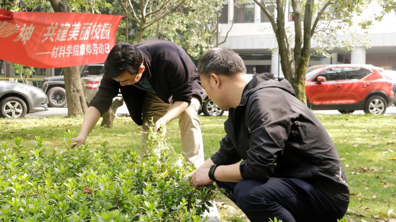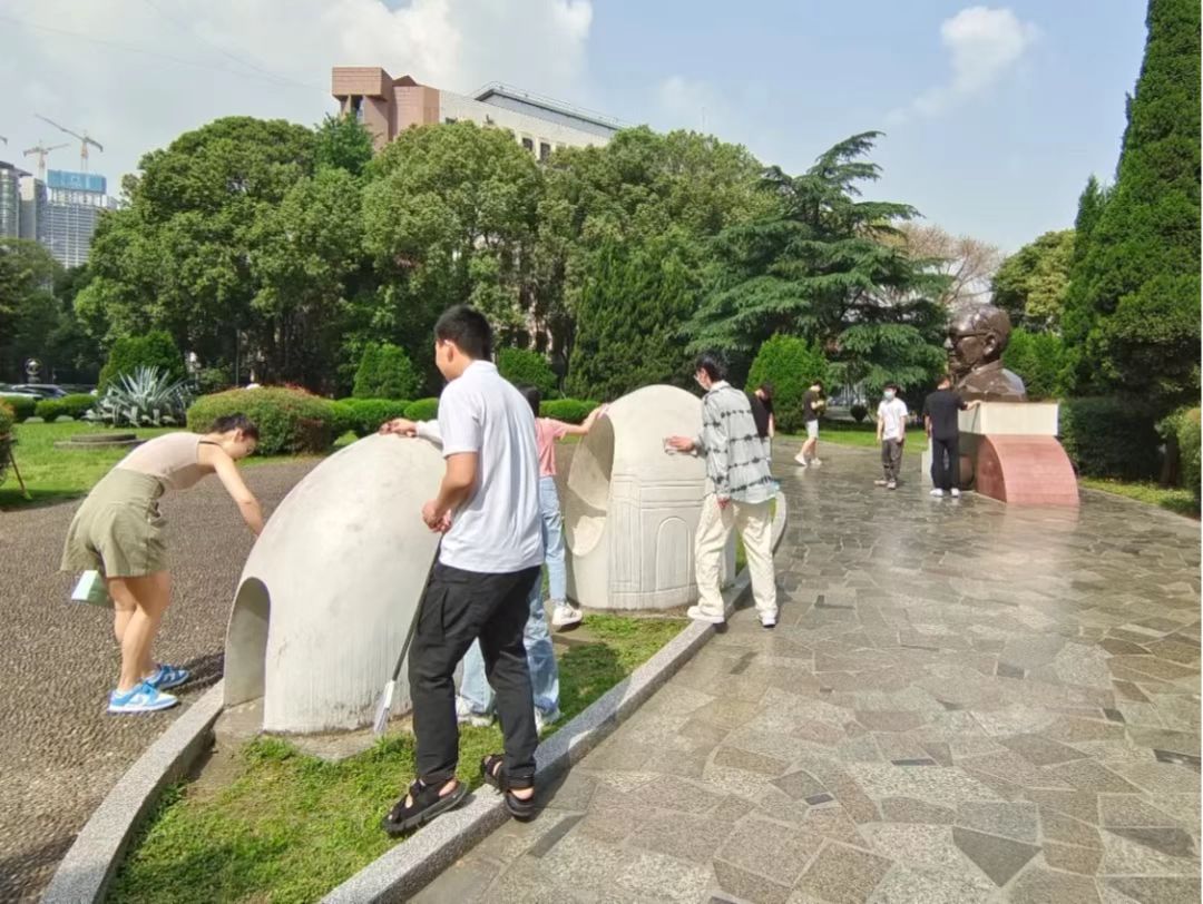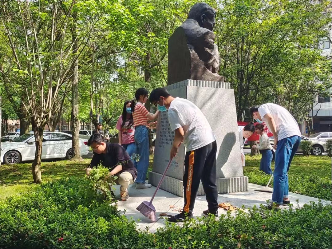 暮春暖阳日,劳动正当时。启动仪式结束后,在陈勇书记和章春军副书记的带领下,大家拿着打扫工具认真地清扫地上的垃圾,整理自行车棚,清洁了三号楼前陈能宽院士塑像和图书馆前茅以升老董事长塑像,拔除绿地上的杂草……,参加劳动的师生脸上洋溢着“劳动最光荣、最幸福”的表情。