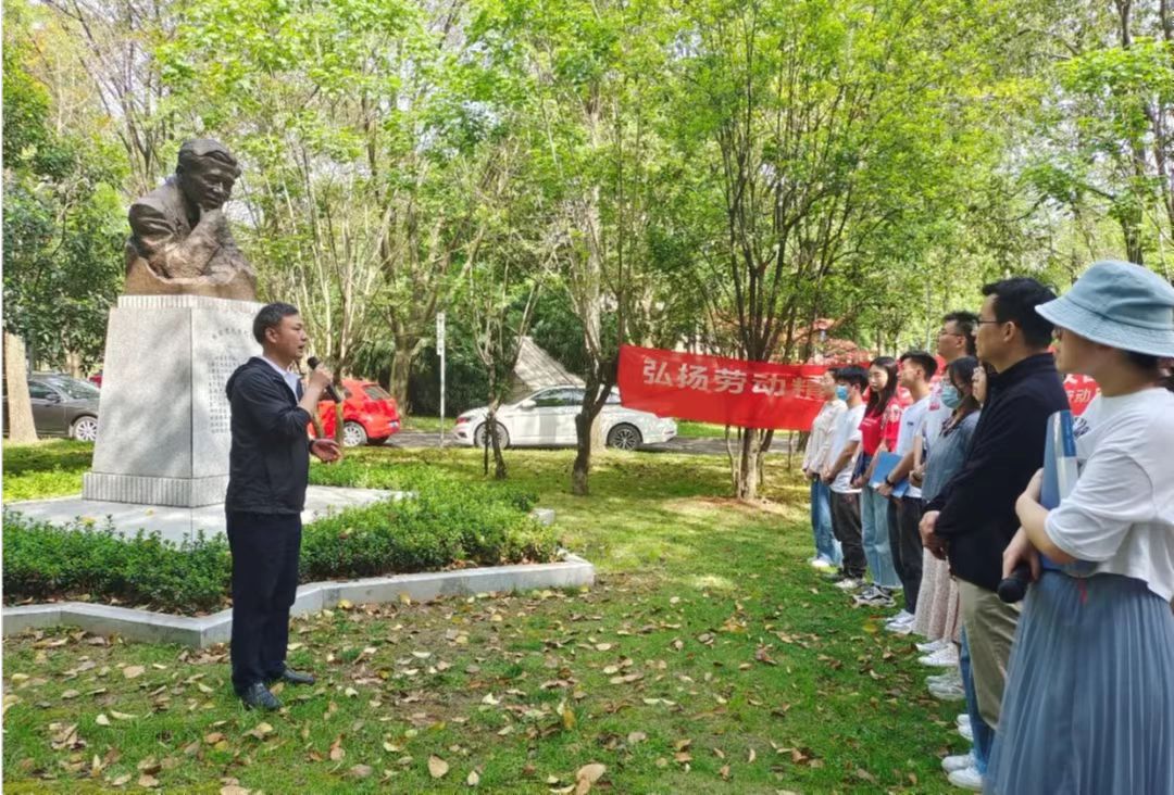 2022年4月29日上午,喜迎 “五一”国际劳动节之际,基于“科学家精神传承”的劳动实践教育活动启动仪式暨劳动实践第一堂“示范课”在九里校区陈能宽塑像前顺利举行。公司党委书记陈勇、党委副书记章春军、专职组织员严翼飞,以及辅导员代表、本研党团支部主要骨干代表、员工代表参加本次活动,启动仪式由章春军副书记主持。