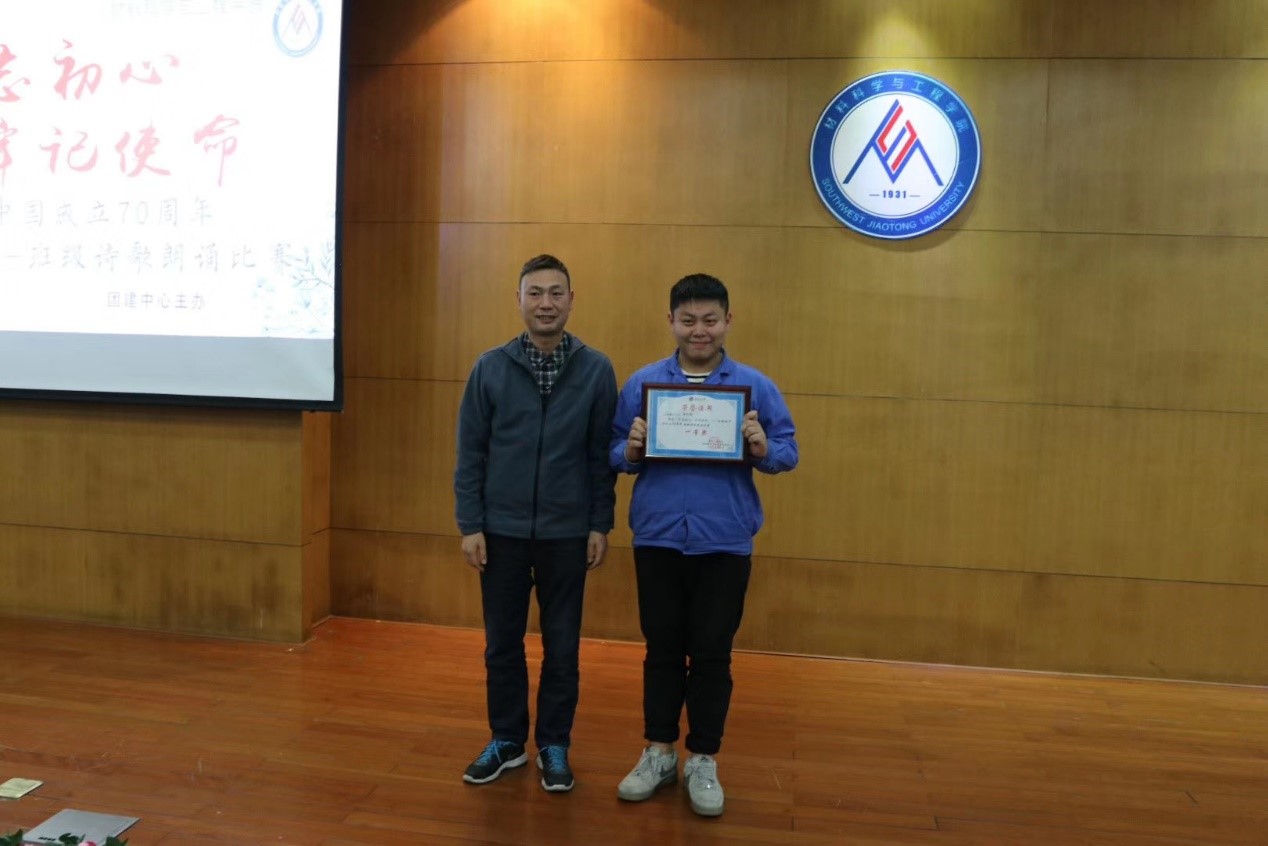 大二分专业过后,我们重新组建了新的班级,我也继续担任新专业班级班长,从此和同学一起努力,为建设一个正能量的优秀班级体而奋斗。在一次次的活动中,班级同学心往一处想,劲往一处使,我们班取得了公司诗歌朗诵比赛“特等奖”、校级示范团支部等荣誉称号。荣誉背后也有遗憾,我们秉持“聚是一团火,散是满天星”的高分子精神参加公司忠忱班集体答辩,虽然最后与其失之交臂,但通过此巩固了班级同学间的友谊,增强了班级凝聚力。感谢班级的同学们,一起读书学习,一起为了班级更好,我们始终在一起。