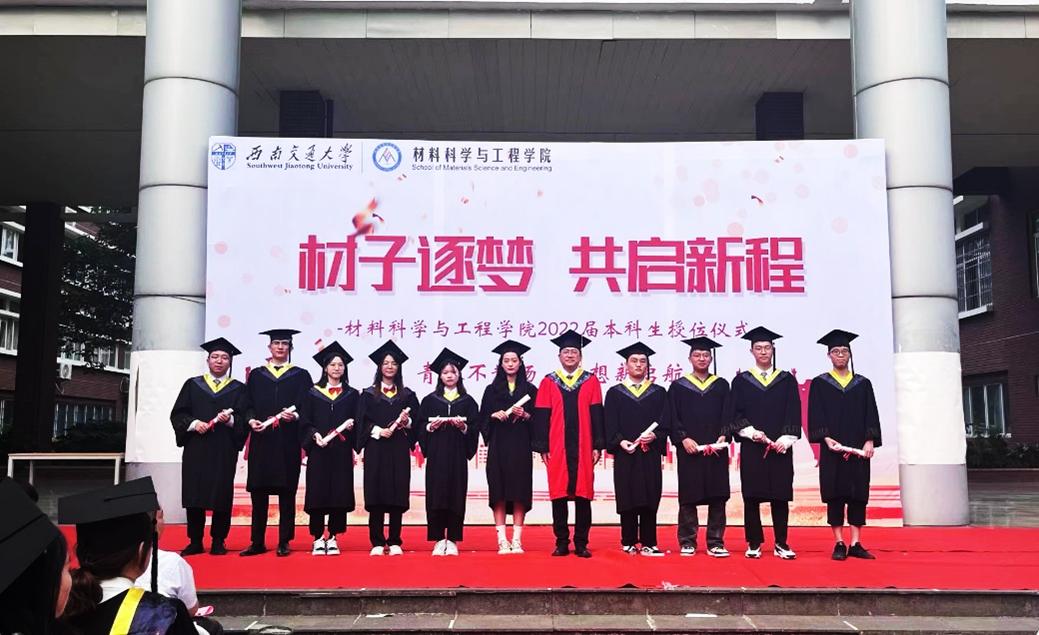 2022年6月18日,以“材子逐梦,共启新程”为主题的bevictor伟德官网2022届本科毕业典礼暨授位仪式在韦德官方网站犀浦校区二号教学楼办公区外的广场顺利举行。2018级本科生、公司党政领导班子全体成员和教师代表、全体辅导员参与此次典礼。