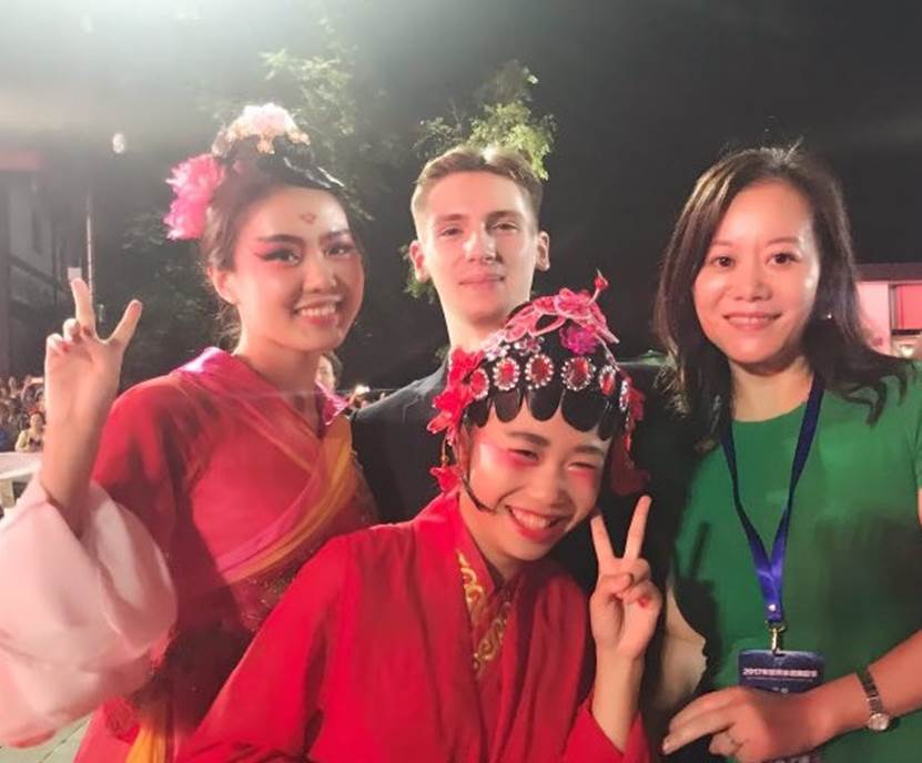 2017年9月参加国际老员工文化艺术节演出(左一)