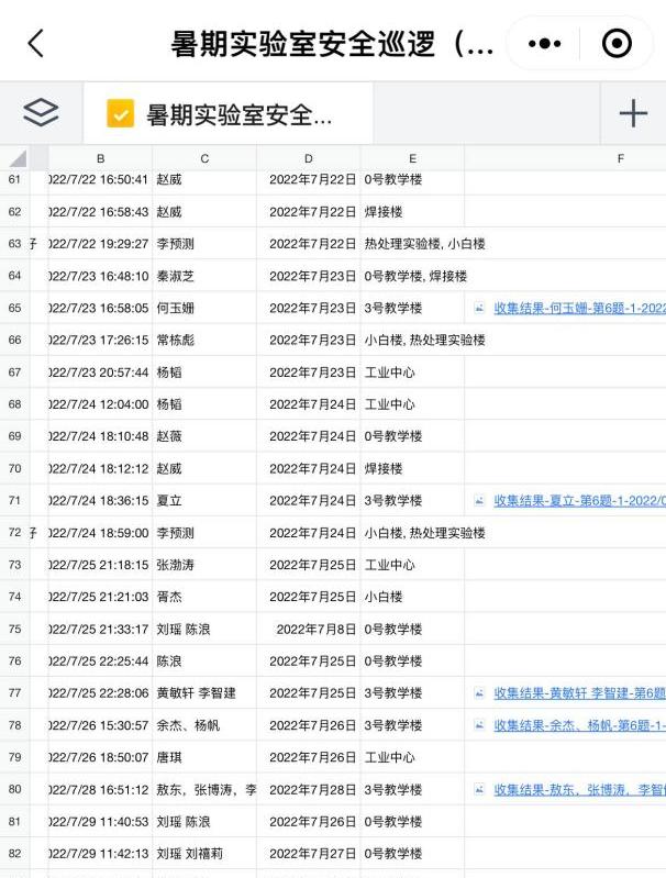 安全巡查不停歇。自2022年7月11日起,公司“院领导抽查、实验教师轮值检查、实验室安全责任人自查和员工党员巡查队巡查”的实验室安全四级联动检查机制正式运行,员工党员巡查队的巡查区域范围“每天全覆盖”。检查结果分别登记于《暑期安全巡查记录本》和“暑期实验室安全巡逻情况汇报”小程序。