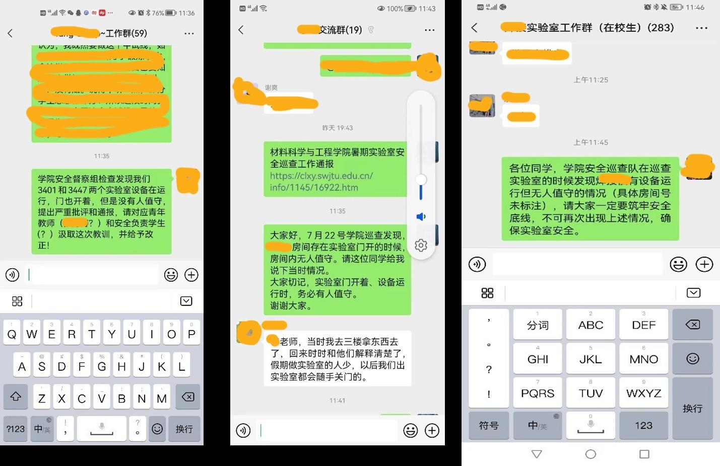 以制度化确保责任化和长效化。公司党委制定实施《实验室安全工作23条》,建立实验室安全工作责任体系,加强检查整改力度,全方位保障实验室安全“零事故”。以公司研究生党建中心为实验室巡查工作推进的协同中心,每日每周进行巡查排班,确保把好的传统和风气传承下去,为常态化深入实验室提供了制度保证。为实验室巡查工作提供反馈平台,建立巡查联络群、建立巡查台账,确保发现安全隐患后能及时消除,履职效果注重实际。