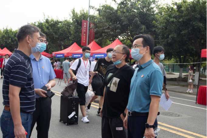 集团、公司的领导老师们,也来到了迎新点位