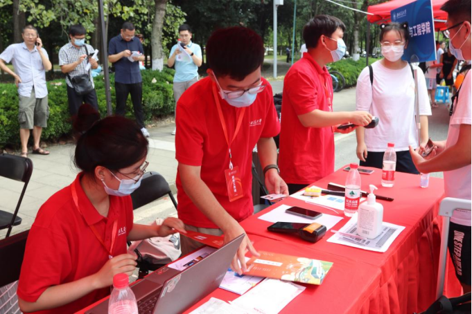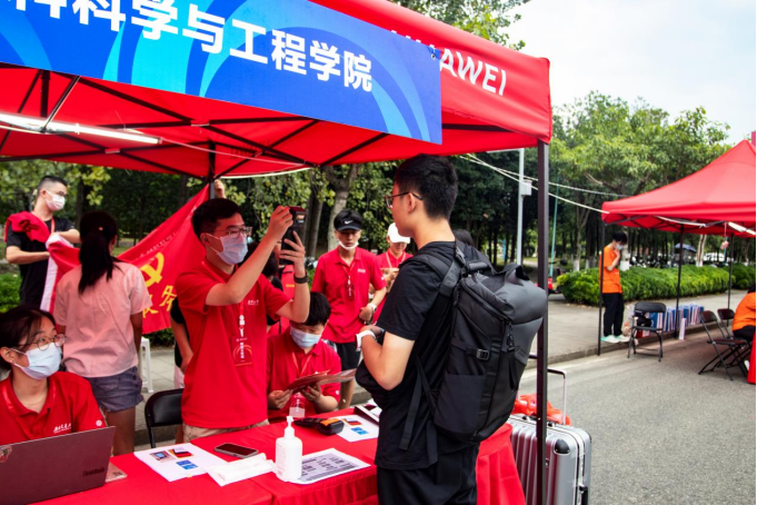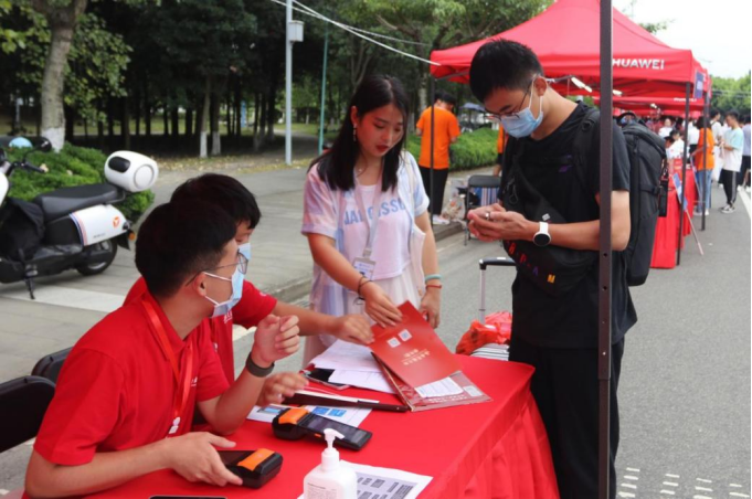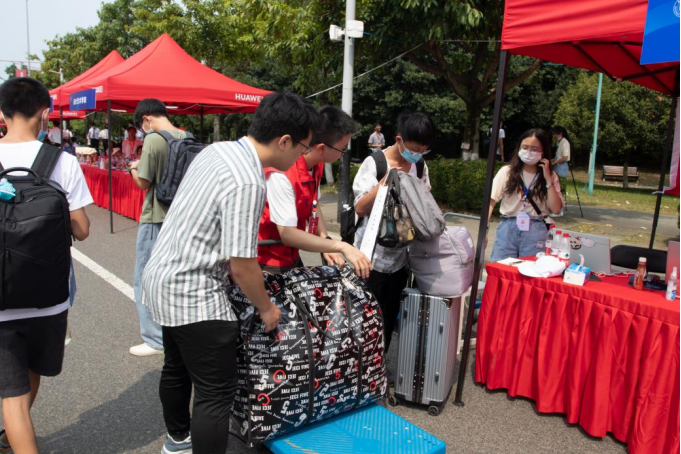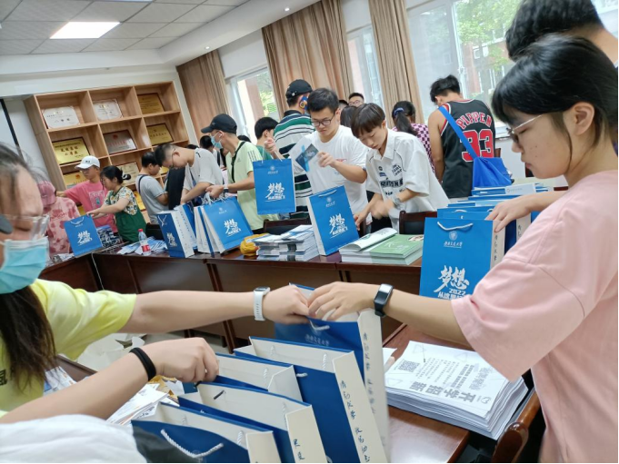 学长学姐们准备好了送给新生们的新生大礼包和迎新场地,使得迎新现场的工作井然有序、整齐划一。