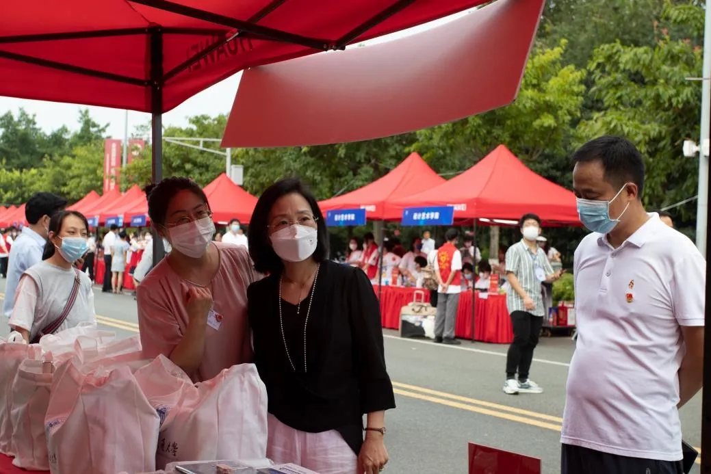 工会的老师们也为迎新现场送去清凉,一件件防暑降温的水,温暖着现场工作人员的心。