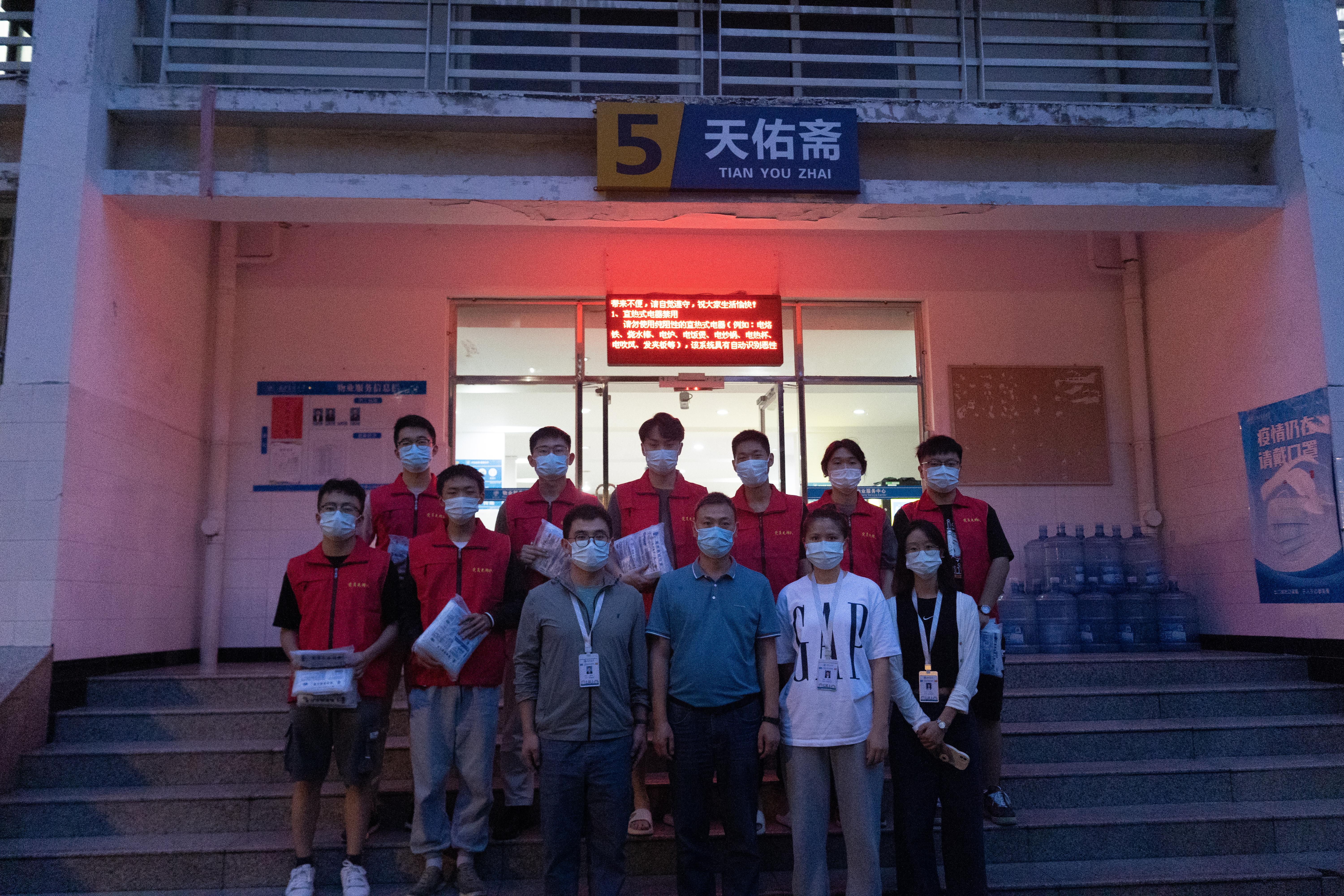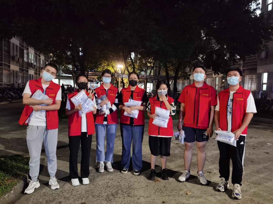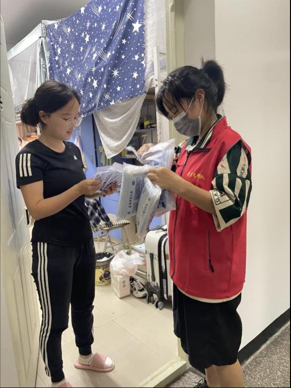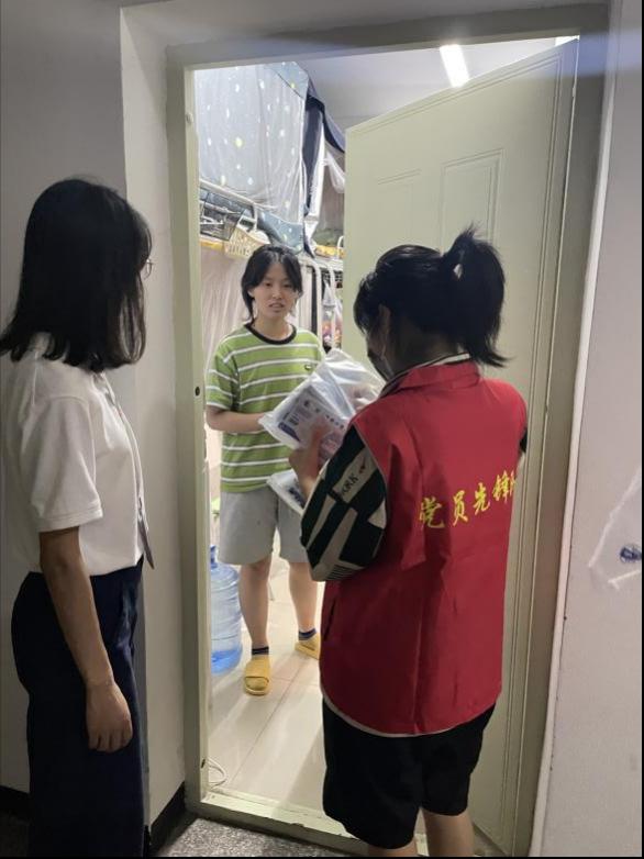 员同志积极响应党组织的号召,在鲜红的党旗下迅速集结,为同学们送去防疫物资,用青春的迅猛速度、青春的火热温度、青春的担当态度,为同学们的防疫安全贡献力量。