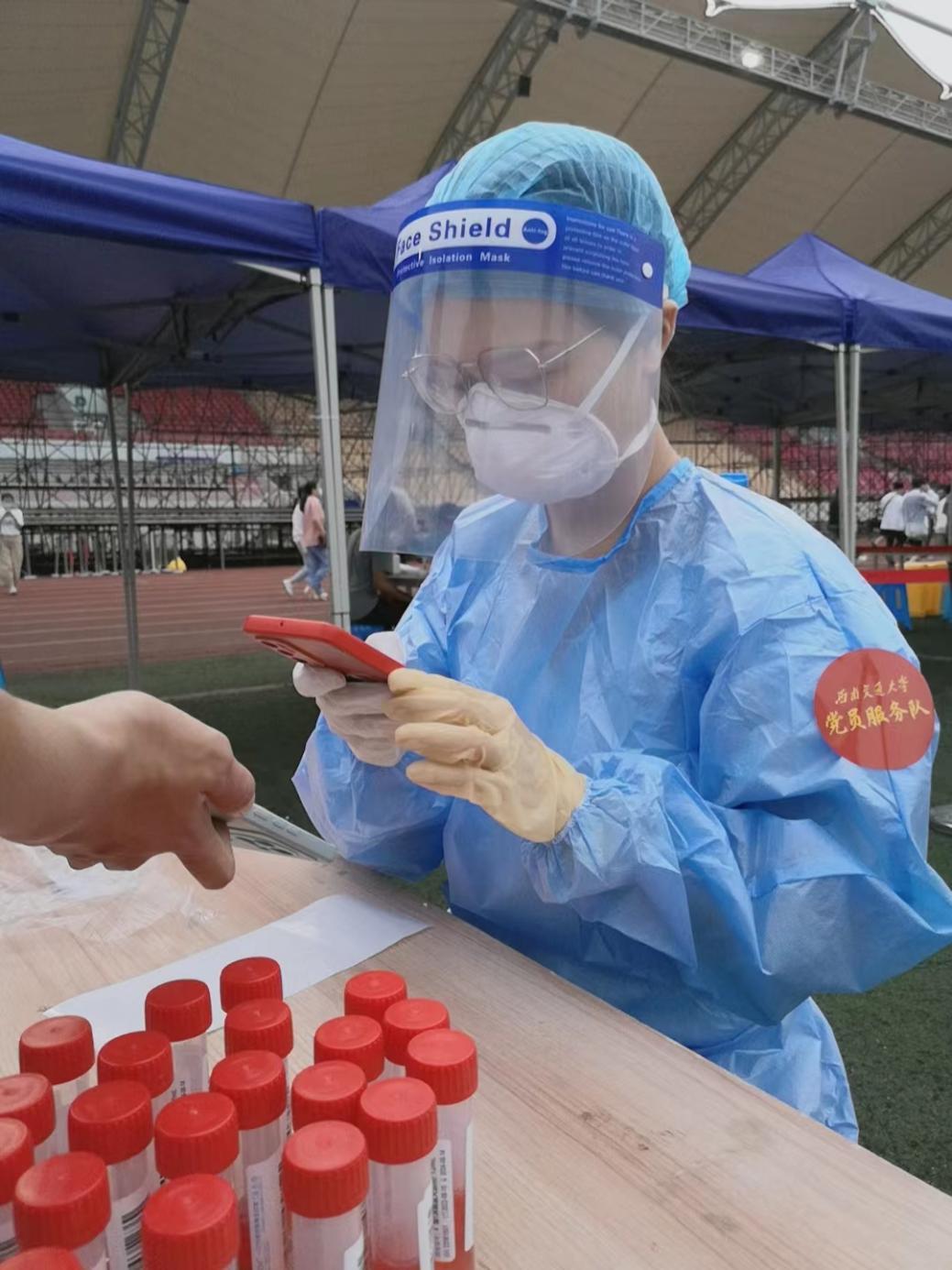 bevictor伟德官网本科生参与犀浦校区核酸检测现场志愿服务
