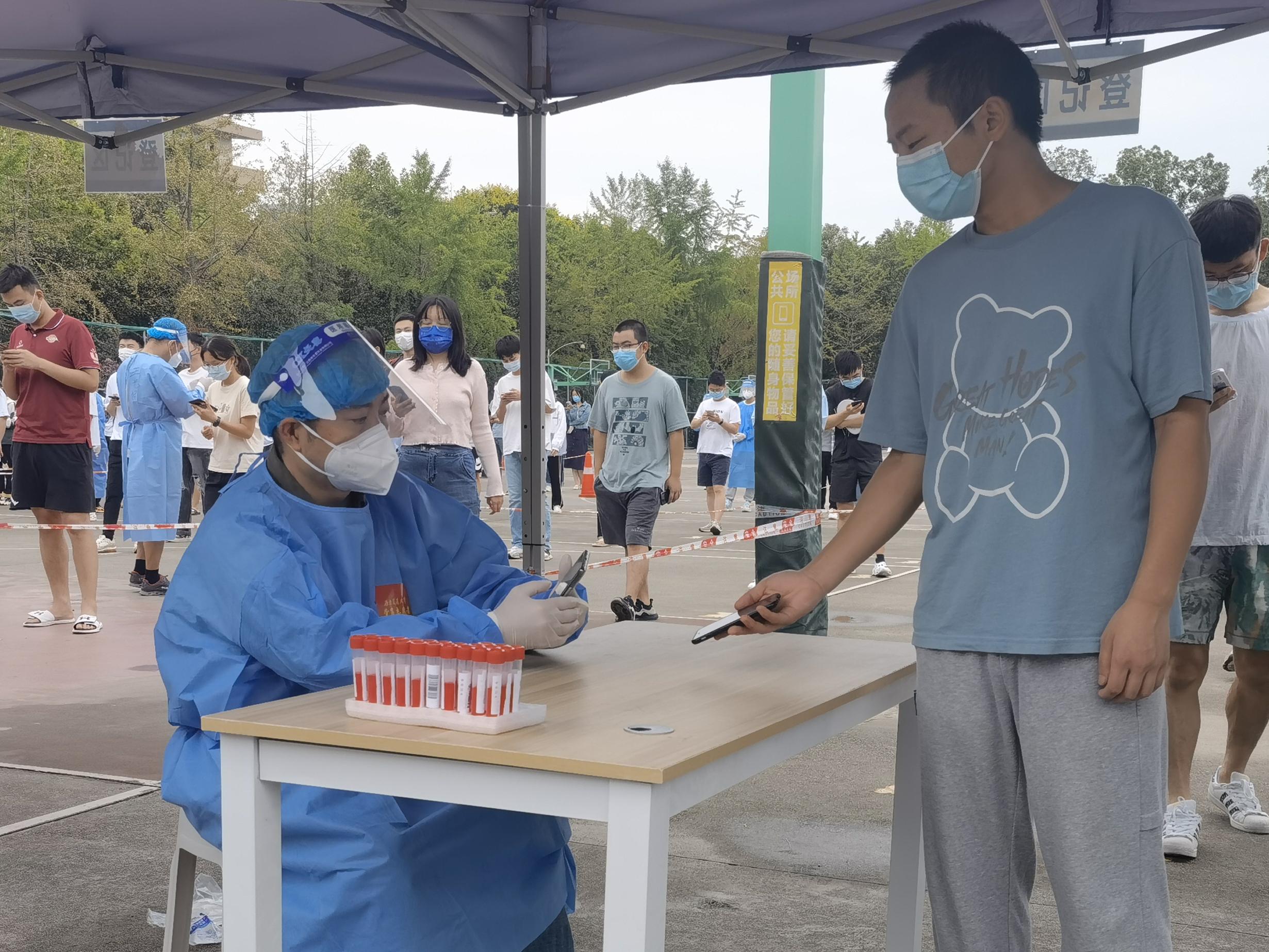 李涛在九里校区核酸检测现场参与志愿服务