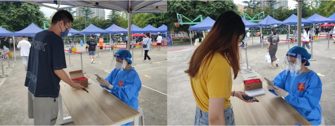 徐震昭、卢怡帆分别在九里、犀浦校区核酸检测现场参与志愿服务