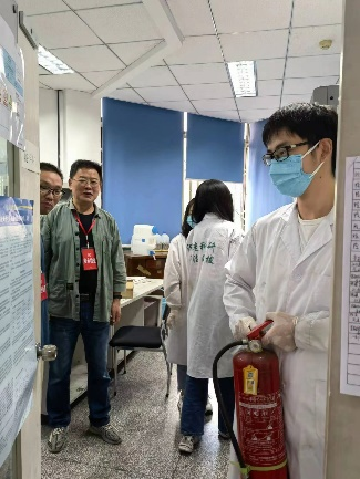 本次安全检查重点包括以下三点:详查相关实验室危险化学品的管理规范性问题;检验同学们是否会使用灭火器、灭火器使用是否规范;离职、退休人员作为实验室安全责任人的门牌信息是否更换等。检查过程中发现问题,及时给老师、同学提出,要求能整改的现场必须进行整改。