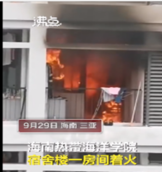 2020年9月30日,海南一高校宿舍突发大火,大火很快吞没了整个宿舍。据该校后勤人员反馈,事件起因疑似宿舍员工违规使用大功率电器,着火后引燃蚊帐,火势迅速蔓延开来。