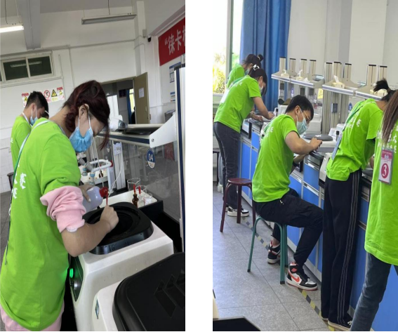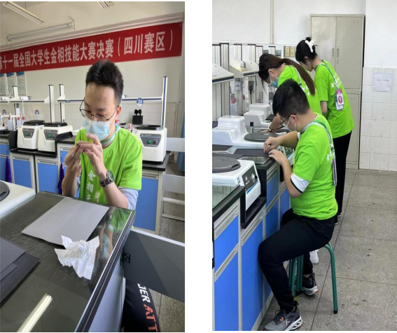 参赛现场:4位同学严谨细致地完成了样品领取、样品磨制、抛光、腐蚀、组织观察等每一道工序,最终提交了自己的作品。