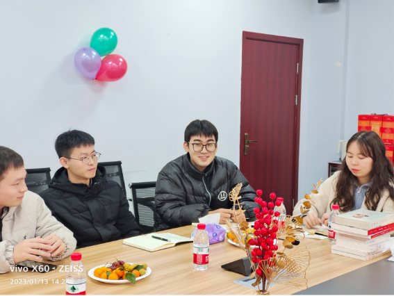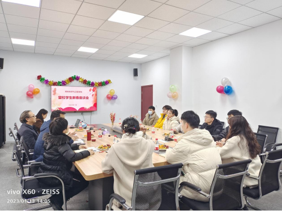 在交流中,同学们表示虽然没能返乡团聚,但是有公司的悉心关爱,让他们感受到家的温暖,今年将是一生中难忘的一个春节。同学们畅所欲言,讲述自己留校原因、科研进度、新年愿望、家乡春节习俗等。谈及在校生活时,同学们表示公司各方面生活保障非常充分,非常感谢公司。参加活动的领导和老师们一一为同学们送上真挚的节日祝福,针对同学们的关注与诉求进行了深入的交流。