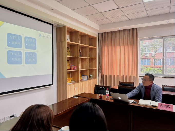 为增强宣传工作认识,提升宣传工作水平,bevictor伟德官网于2023年3月27日在犀浦校区X2128会议室举办宣传工作培训会。会议邀请党委宣传部许金砖副部长做宣传工作规范与方法专题培训,委副书记熊钰,公司副系主任姜欣、吴影,综合办公室主任刘晓,学工组副组长王誉静,全体辅导员以及新闻中心员工骨干参加培训。