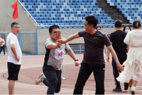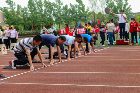 首先进行的是材料健儿和老师以个人为单位的跑步比赛