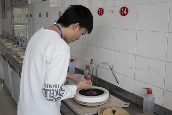公司157名参赛选手和10名校外参赛选手共分为六组进行比赛。每组选手依次排序签到,领取号码牌、比赛样品、比赛耗材入场。每组比赛开始前,检录处志愿者进行注意事项的说明,操作现场的指导老师进行操作规范说明,保证了比赛安全及选手水平的正常发挥。