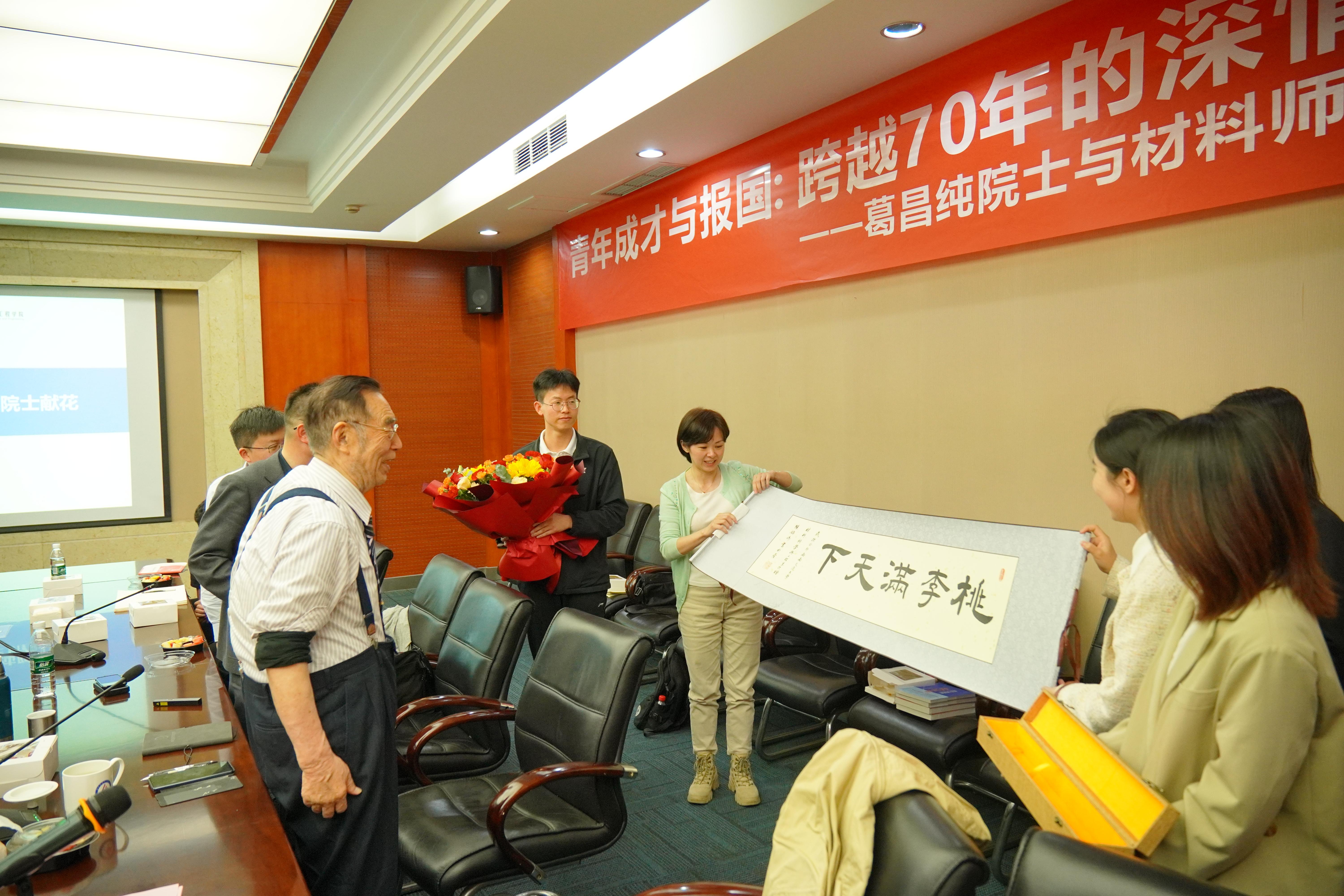 最后,员工代表向葛院士献上了花束及原创字画,葛院士在现场为同学们签名赠书,并集体合影留念。