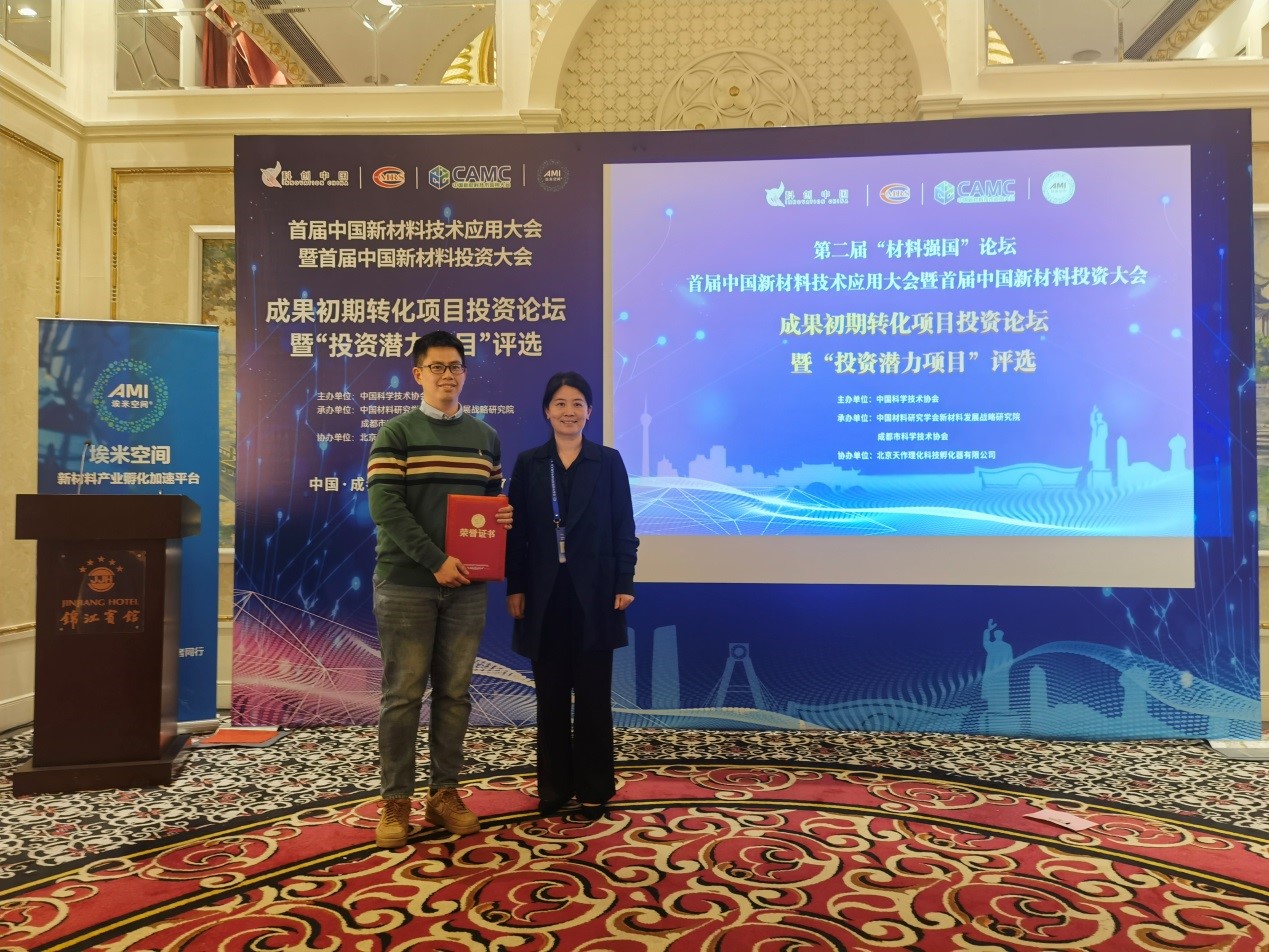 本次论坛遴选了10个科技成果转化项目参加路演,公司推荐的2个项目均入围,分别是陈辉教授团队项目“轨道交通装备关键零部件高性能表面涂层制动盘”、胥永刚教授团队项目“高阻尼减振合金及其工程应用”。其余入围项目来自哈尔滨工业大学、南京大学、中南大学、天津大学、中科院计算所等国内知名高校和科研机构。胥永刚教授、吴影老师分别代表团队参加路演, 2个项目在路演角逐中都受到投资方高度关注。经过激烈竞争,大会最终评选了2个“投资潜力项目奖”,公司推荐的项目“轨道交通装备关键零部件高性能表面涂层制动盘”成功获奖。
