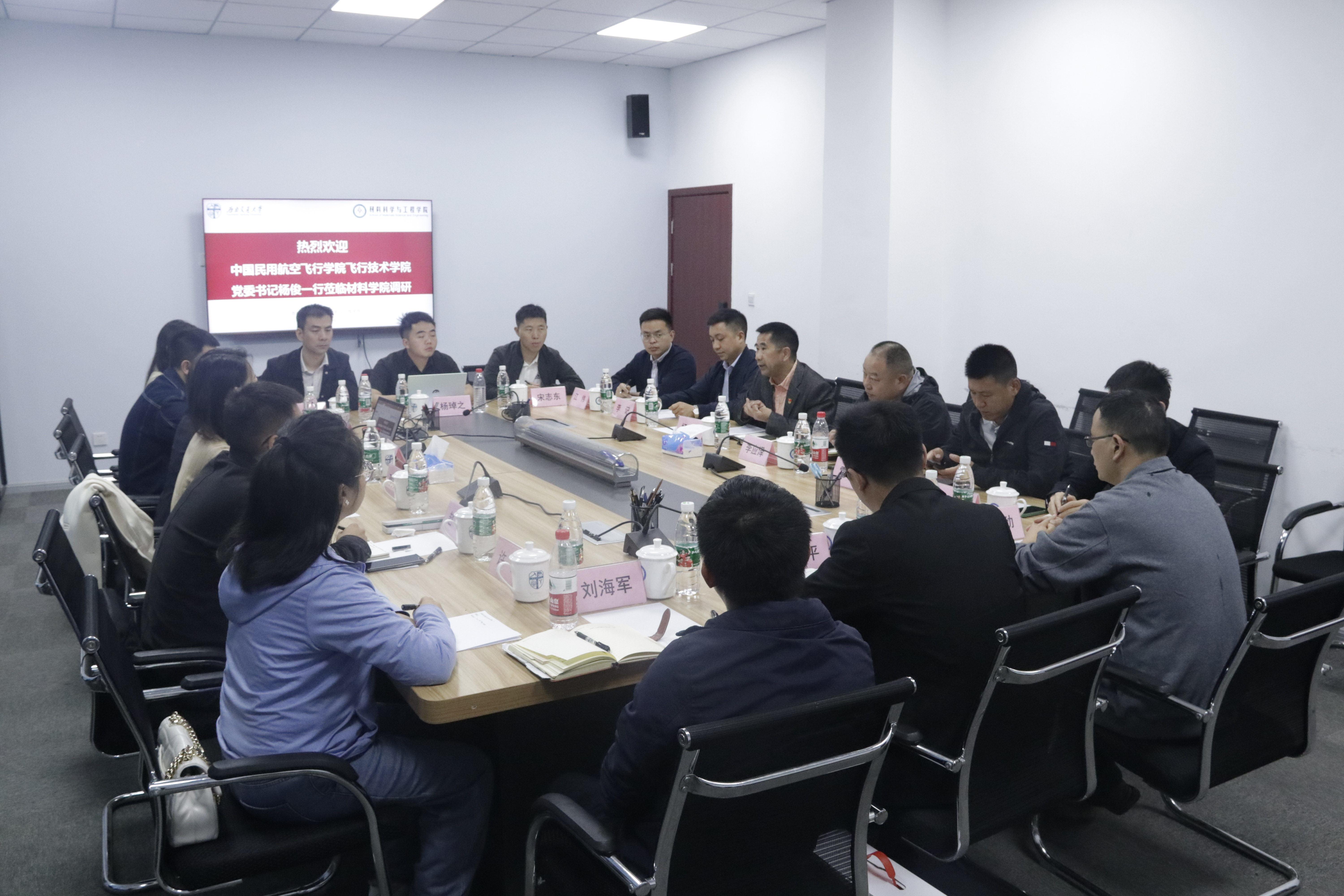 5月9日上午,中国民用航空飞行公司飞行技术公司党委书记杨俊一行到公司调研交流。公司党委副书记熊钰,公司党委员工工作部网络思政教育科科长邓秀芸,马克思主义公司团委书记赵晨和bevictor伟德官网辅导员参加交流会,会议由熊钰主持。