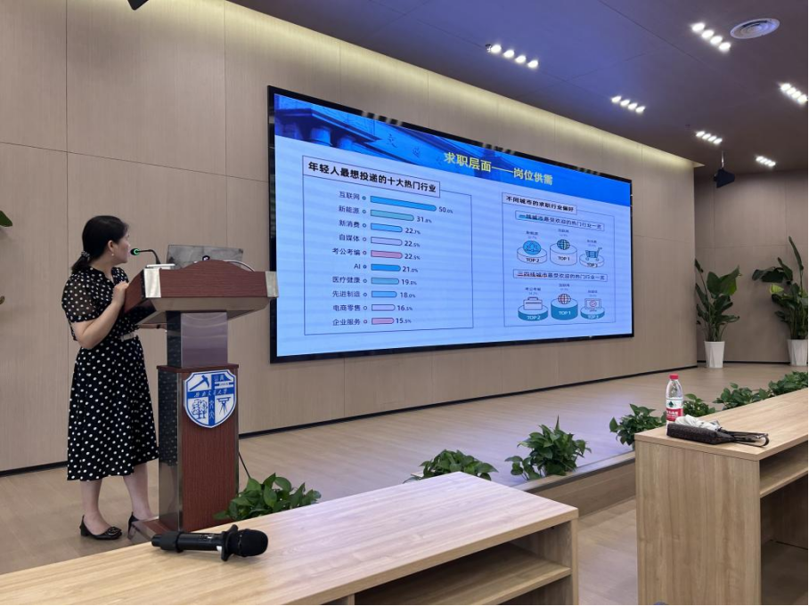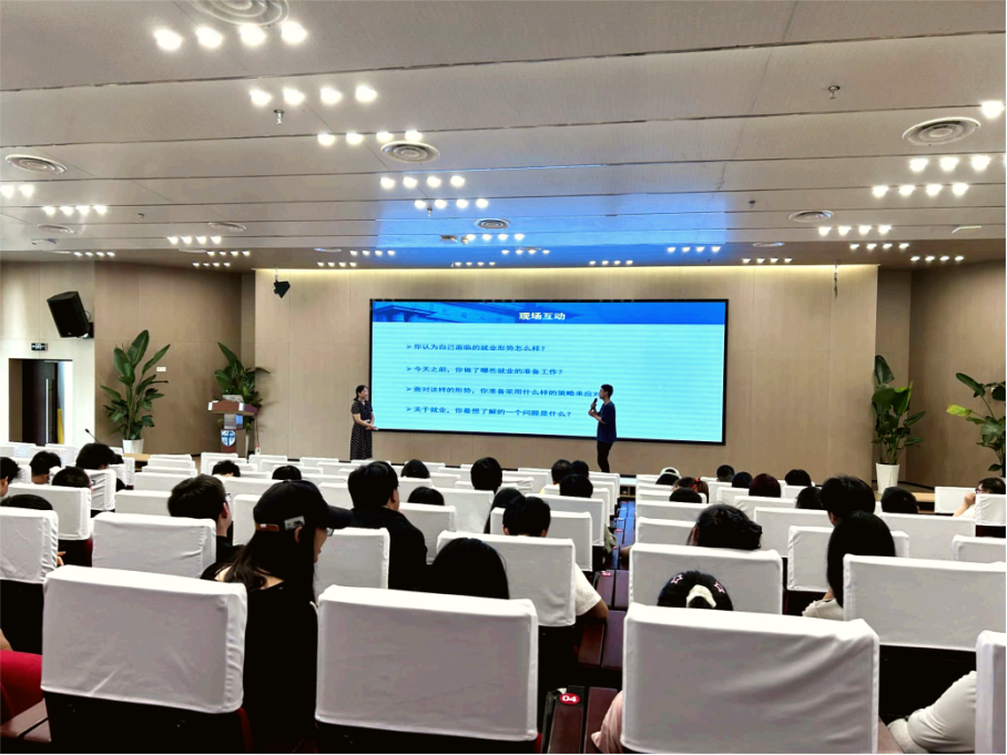 黄春蓉结合当前老员工就业中普遍存在的问题,鼓励大家减少精神内耗,克服盲从、焦虑心理,尽早积极行动起来,并预祝在即将到来的秋招中斩获心仪的工作岗位。