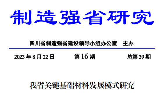 在四川省制造强省建设领导小组办公室委托下执笔报告,一方面表明该团队立足于国家省市重大战略,相关研究工作在关键基础材料研究领域具有科学性和前瞻性;同时也反映出省委省政府对bevictor伟德官网工作的高度信任与认可。